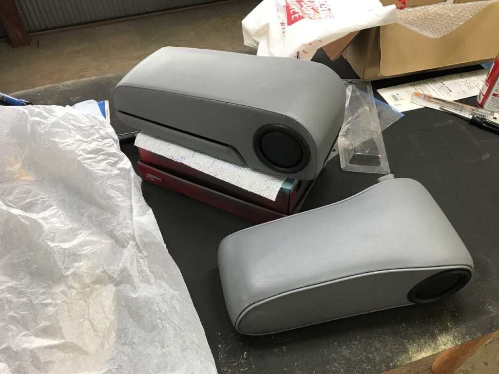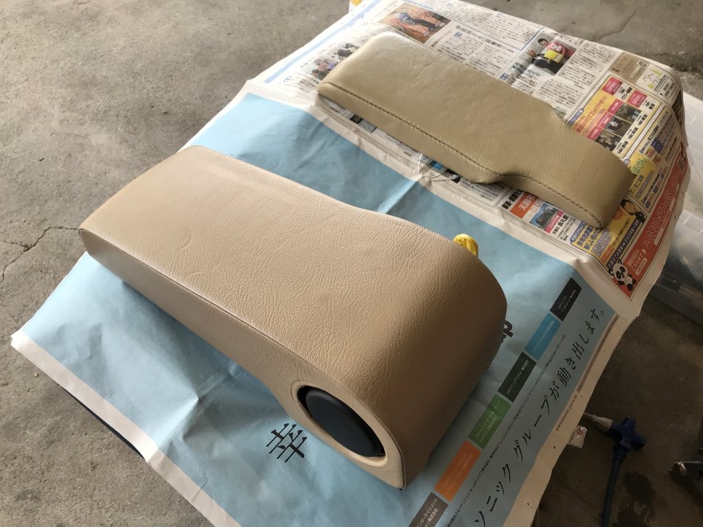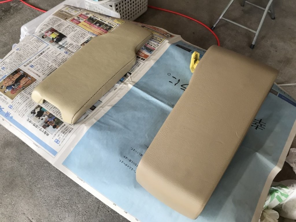 お預かりしたセンターアームレストは、オリジナルよりは良いですが経年使用により表皮の劣化が進行し