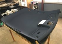 その上で、お客様のご要望に沿った天井カラーへの色替え生地を使用し、曲面の多いニュービートル特有の形状に合わせて、無理な引っ張りやシワが出ないよう張り込みを行いました。