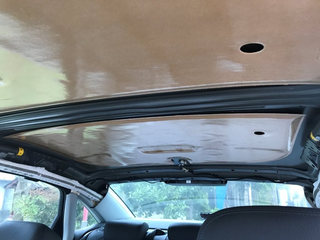 天井ライナーの全面張替えとAピラーの同時張替え施工を行いました。
