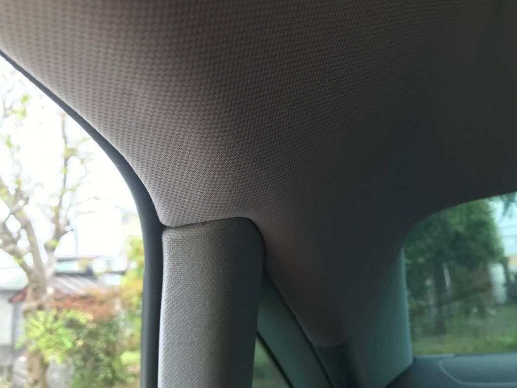 今回の車両ではAピラーの生地剥がれも確認されたため、天井張替えと同時にAピラーも張替え施工しました。